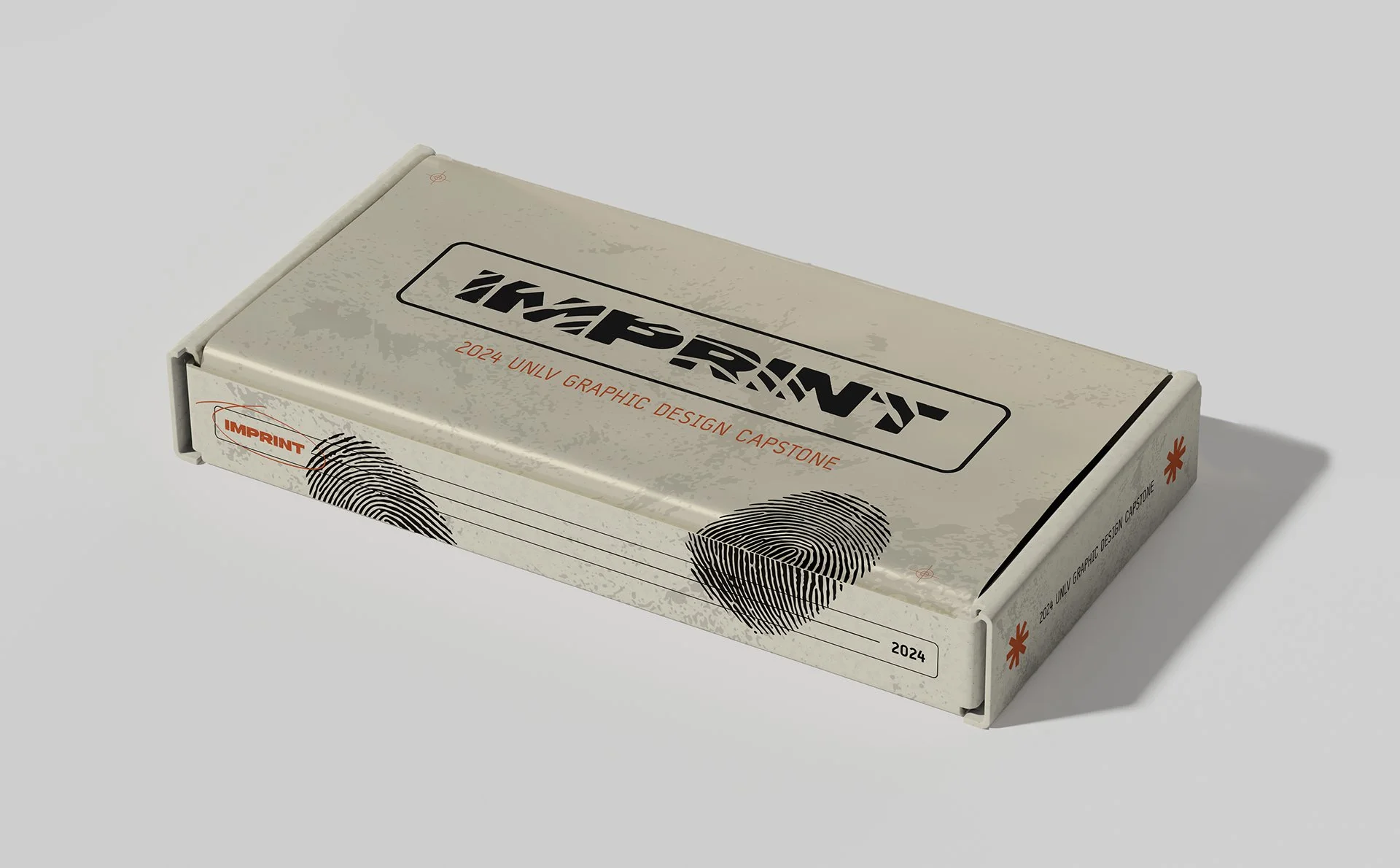 Imprint is our team’s branding proposal for the UNLV Graphic Design 2024 Capstone Exhibition. Through sharing our personal experiences, we discovered a common thread: our time at UNLV was shaped by challenges that ultimately made us stronger. Inspired by this shared value of perseverance, we aimed to convey strength and individuality through the concept of fingerprints—symbolizing the unique marks we leave on the world: our imprints.